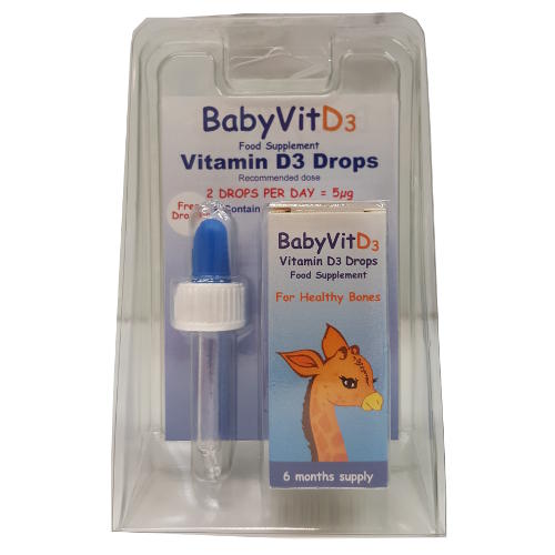 Baby Vitamin D3 Drops contains 340 drops of Vitamin D giving your baby 170 days supply of recommended daily Vitamin D dosage.
