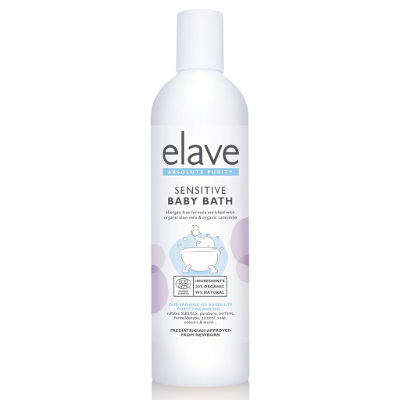 Elave ECOCERT Sensitive Baby Bath is a clinically tested extremely gentle cleanser enriched with Organic Camomile and Organic Aloe Vera to protect and hydrate your baby’s delicate skin.