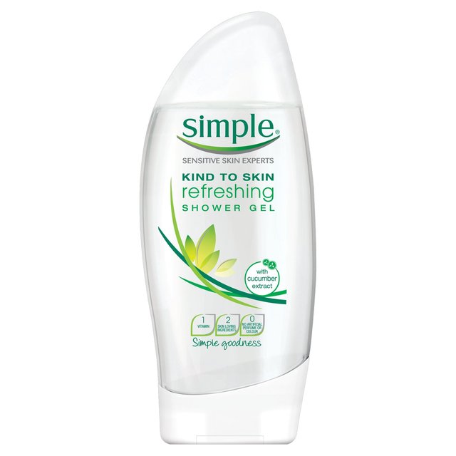 Simple Kind to Skin Refreshing Shower Gel gives gentle cleansing combined with a blend of naturally enhancing ingredients that nourish and care for your skin.