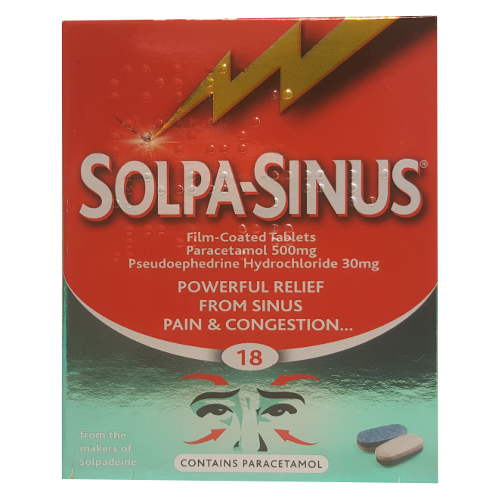 Each SolpaSinus tablet contains the active ingredients Paracetamol 500mg and pseudoephedrine hydrochloride 30mg.