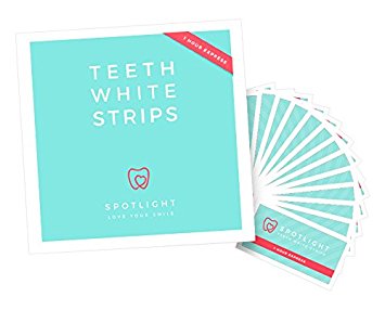 Spotlight Teeth Whitening Strips - the easy to use at home teeth whitening system. Contains 28 easy to use strips, 14 for upper and 14 for lower teeth.