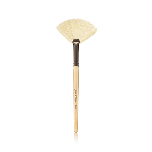 - Jane Iredale White Fan Brush is a soft, long-bristled, fan-shaped brush made of goat hair.