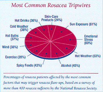 There is evidence that certain environmental factors, foods, drinks, and medications might trigger rosacea. Some researchers believe that specific living organisms might possibly play a role in the flushing & blushing that cause rosacea.